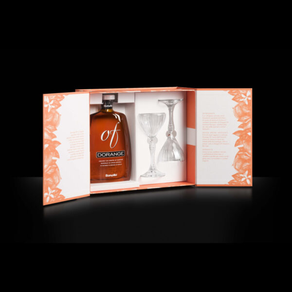 Dorange OF è un’elegante celebrazione dell’arte distillatoria italiana, un regalo che incanta gli intenditori e avvolge chiunque la riceva in un’atmosfera di raffinata indulgenza. All’interno di questa confezione impeccabile, si cela una bottiglia pregiata di grappa, frutto della maestria artigianale della rinomata casa Bonollo.