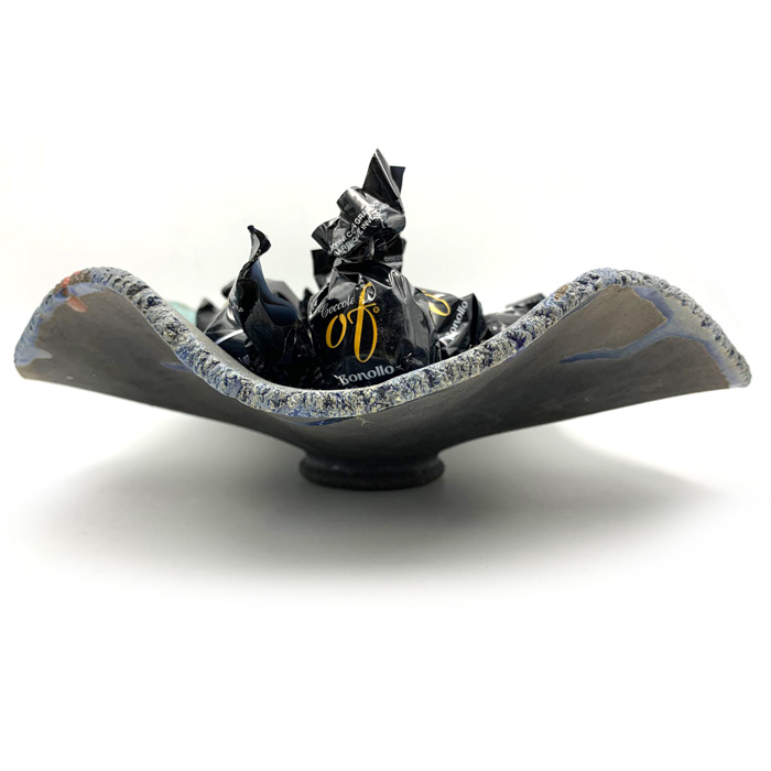 Il Centrotavola in Ceramica Raku Azzurro/Blu con Cioccolatini Bonollo è una fusione di arte e gusto, realizzato con la tradizionale tecnica raku e impreziosito da toni azzurro e blu.